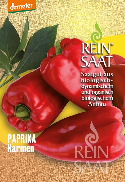 A Karmen paprika bio vetőmag termése ropogós édes, aromás korai érésű kápia paprika.